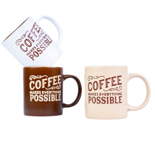 Caneca de Cerâmica 330cc "Coffee Makes Everything Possible" - 3 Cores Disponíveis REF-207001