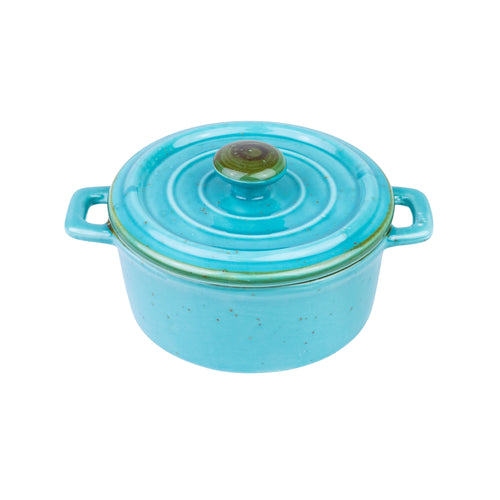 Caçarola Redonda de Cerâmica Turquesa com Tampa 12,5x5,5cm REF-133003